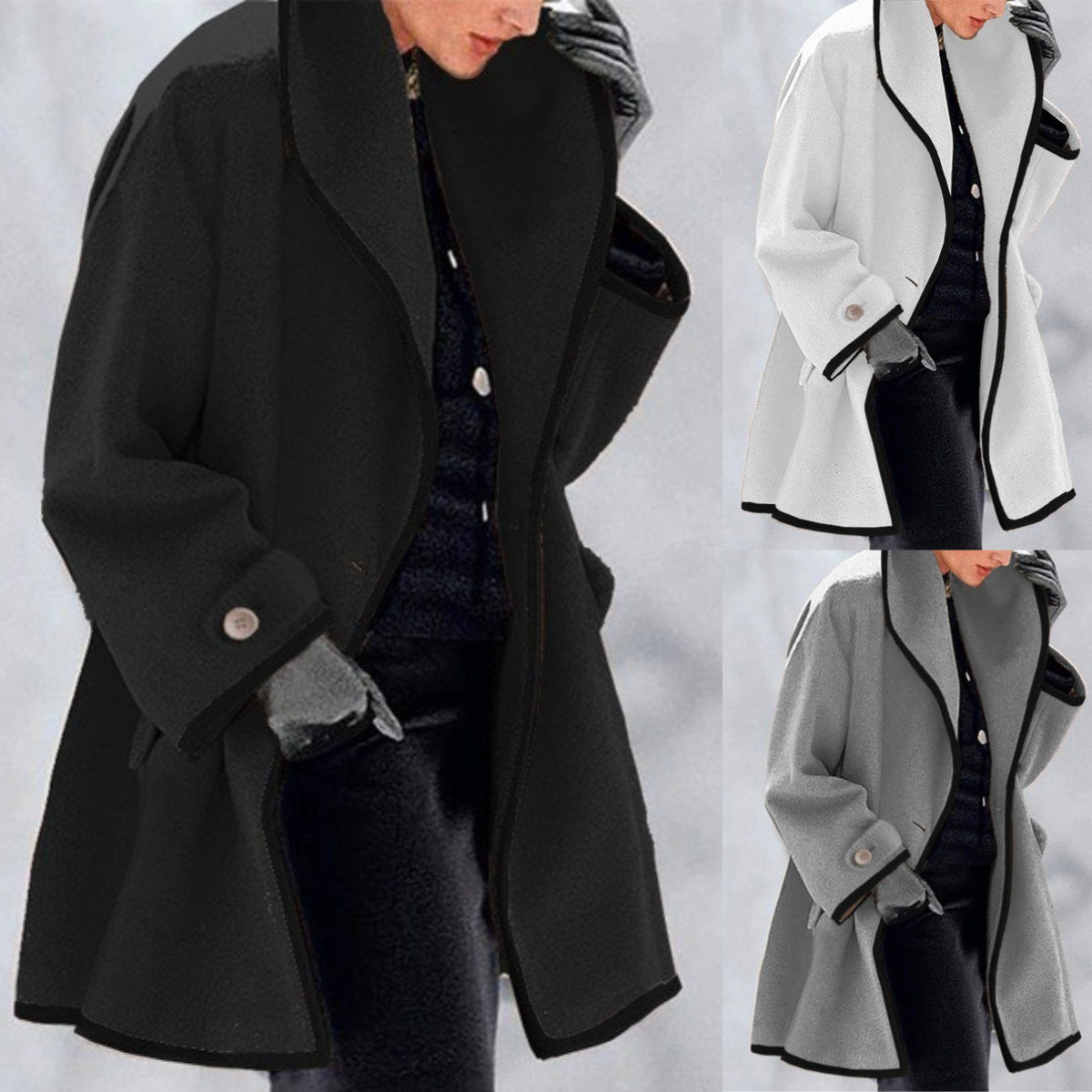 🥰🍁【S-5XL】Ново есенно-зимно многоцветно вълнено палто с качулка, свободно деколте и обло деколте