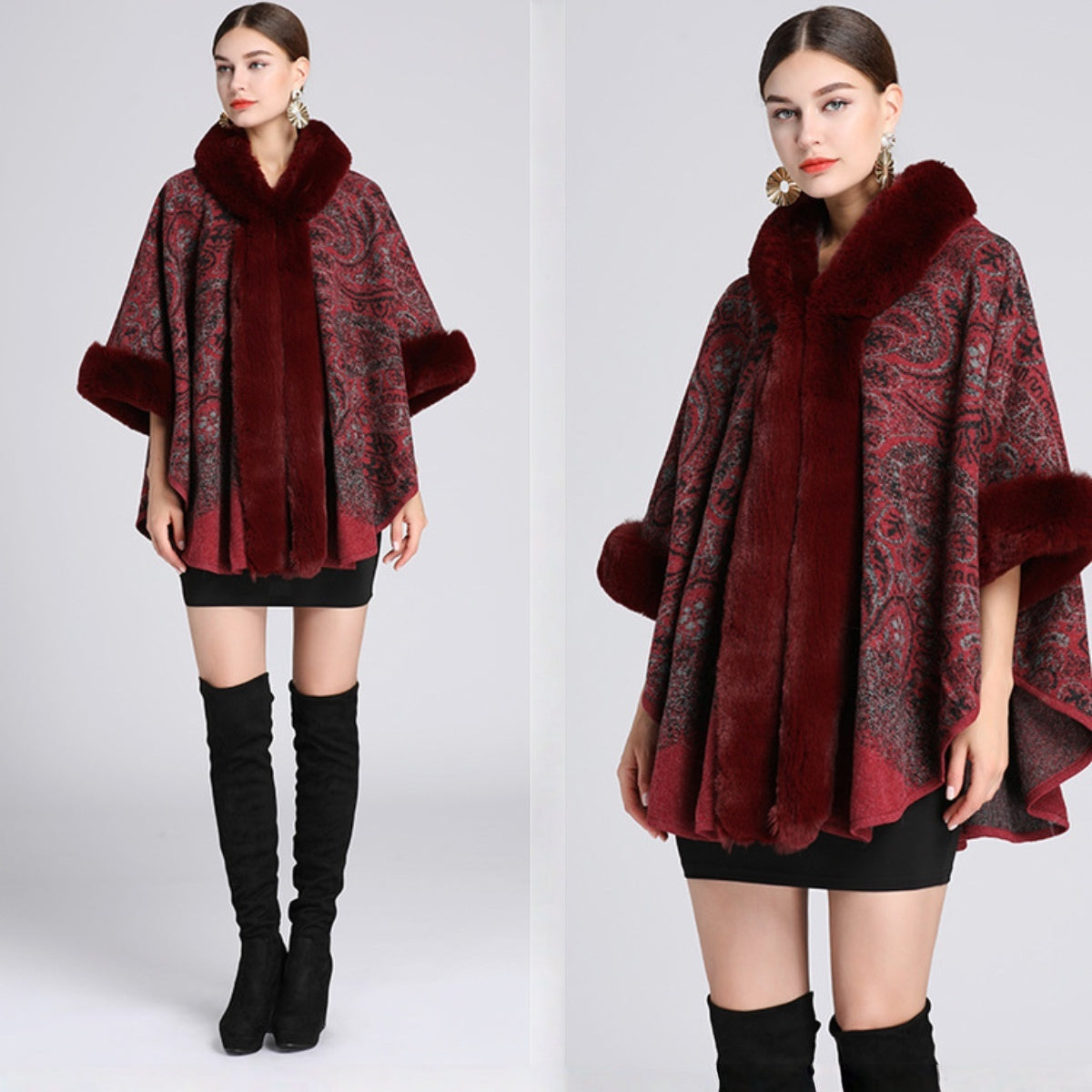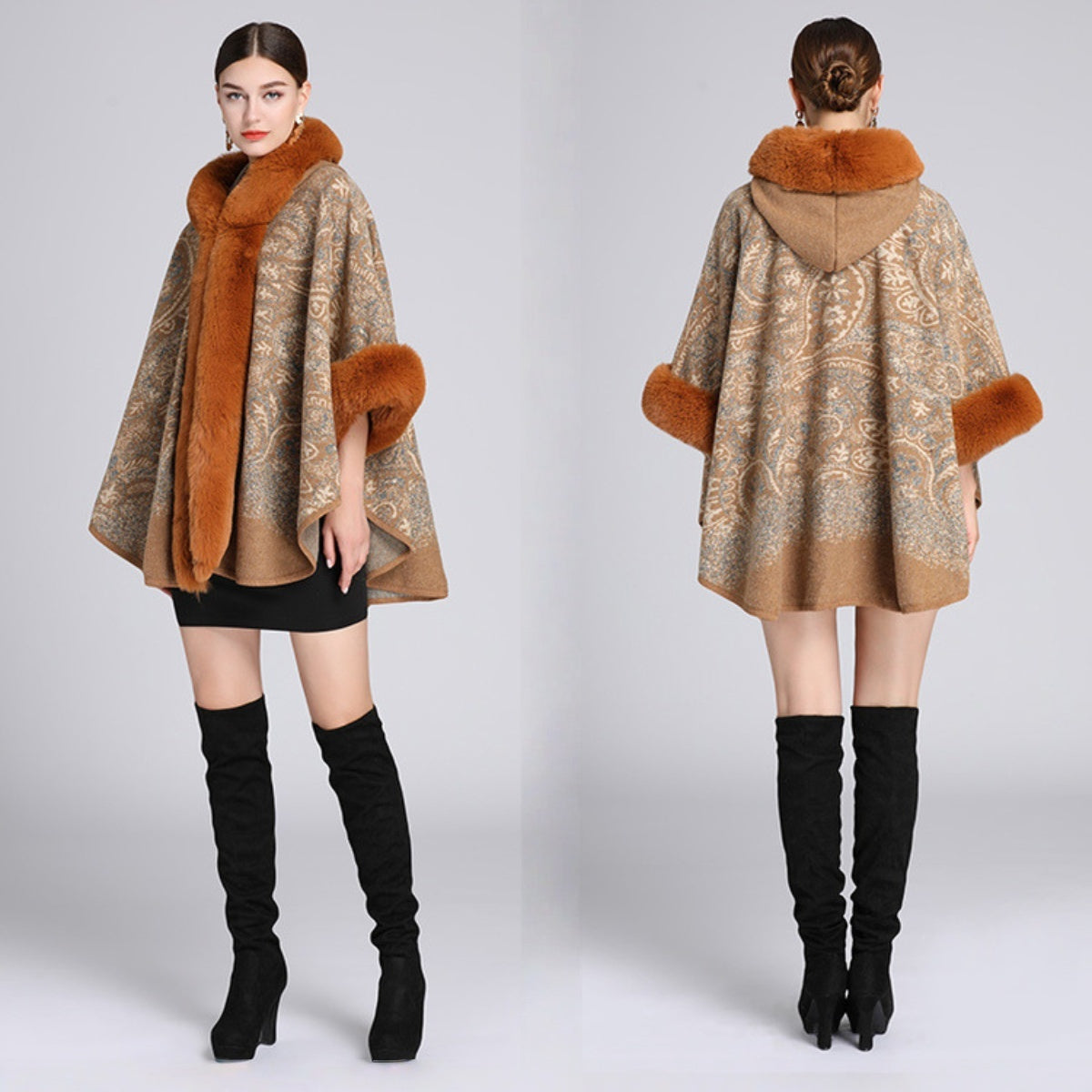 🍁💐【40–85 kg】 Jesen/zima 2025, nov plašč z ovratnikom in kapuco za večje velikosti, šal